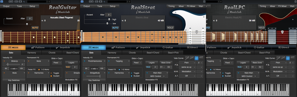 Musiclab社のRealシリーズの音質は、少し過去のものになってしまった感があります(Ample Sound社のギター音源の方が音質は圧倒的にリアルです)が、キーボードボイシングをギターボイシングに変換して鳴らすという部分において、Musiclab社のRealシリーズは非常に優れていますし、操作面でも使いやすくなっています。